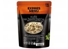 Vepřová kýta a krůtí maso s omáčkou na uzeném špeku, s restovanou cibulkou, žampiony a česnekem. Pikantnost pokrmu dodávají feferonky a chilli. Dvě porce.