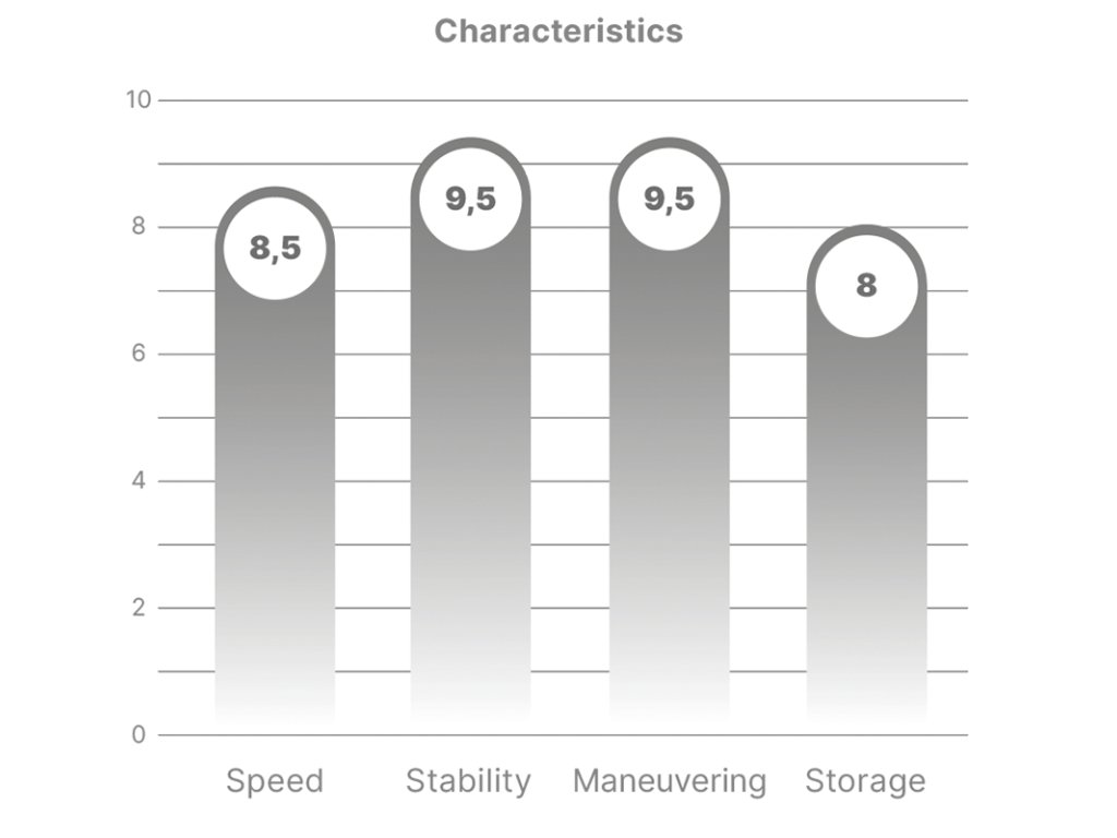 - Vyvážený výkon: střední délka a šířka přináší ideální poměr rychlosti a stability – jistota pro nové jezdce bez ztráty zábavy pro pokročilé