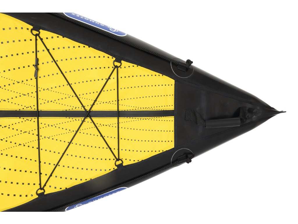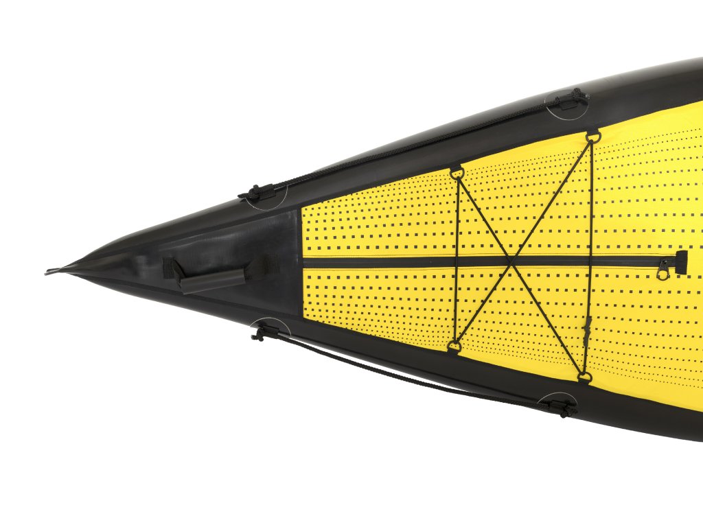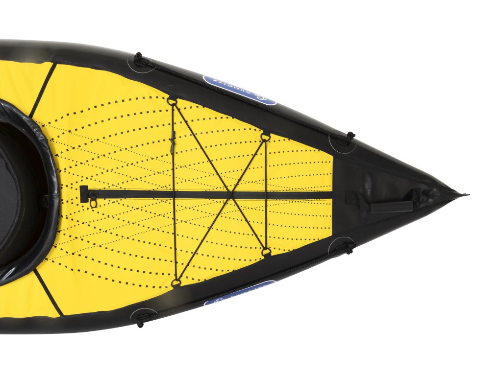 Paluba lze rozevřít pomocí vodotěsných zipů a snadno tak uložit bagáž do lodi.