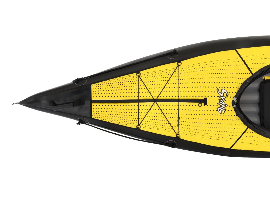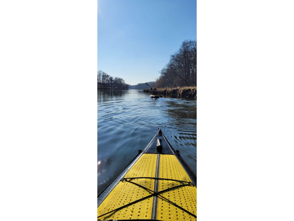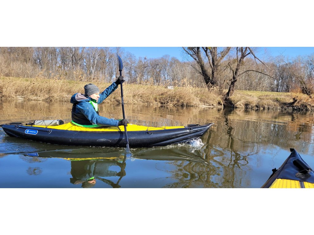 Kajak má systém výztuh, které mu dodávají pevnost. Díky nízké hmotnosti se hodí na výlety s nutností přenášení.