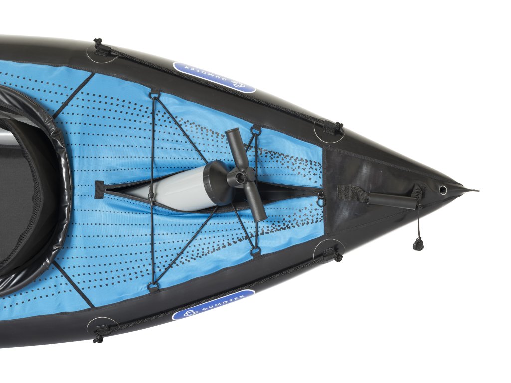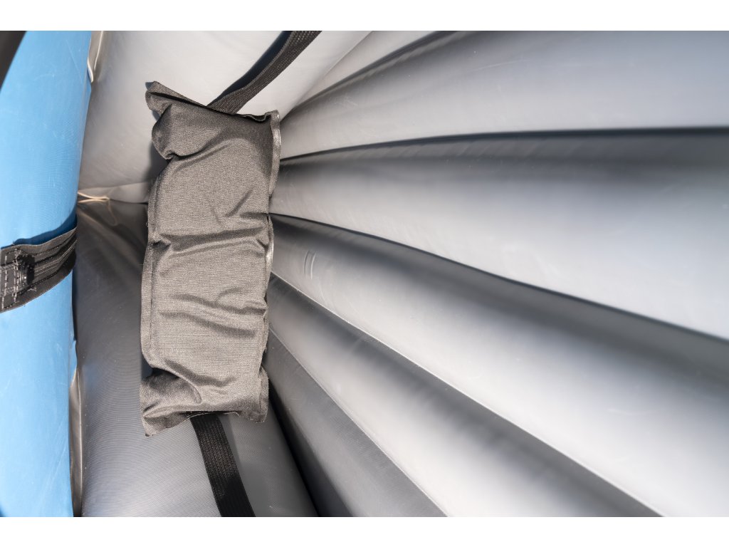 Paluba lze rozevřít pomocí vodotěsných zipů a snadno tak uložit bagáž do lodi.
