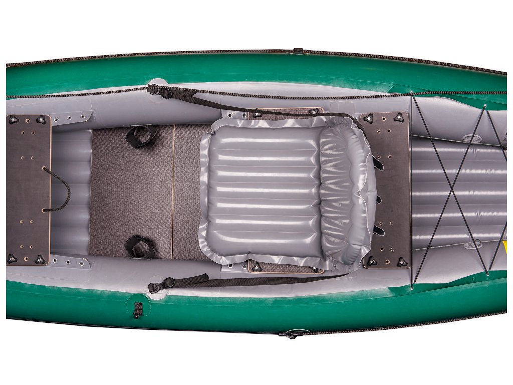 Vychutnejte si rybolov i na vzdálenějších místech, kam je obtížnější se dostat. Užijte si zápas s úlovkem hezky z blízkosti vodní hladiny. Kajak je velmi stabilní, ale dostatečně obratný a rychlý při přesunech po vodě. Na dně lodi je pevná podlážka pro stabilní postoj při lovení. Vysoko postavená polohovatelná sedačka zaručuje pohodlí při nasedání, vysedání i dlouhém čekání na úlovek. Vše sbalíte do vaku, který odnesete na zádech nebo odvezete v kufru auta.