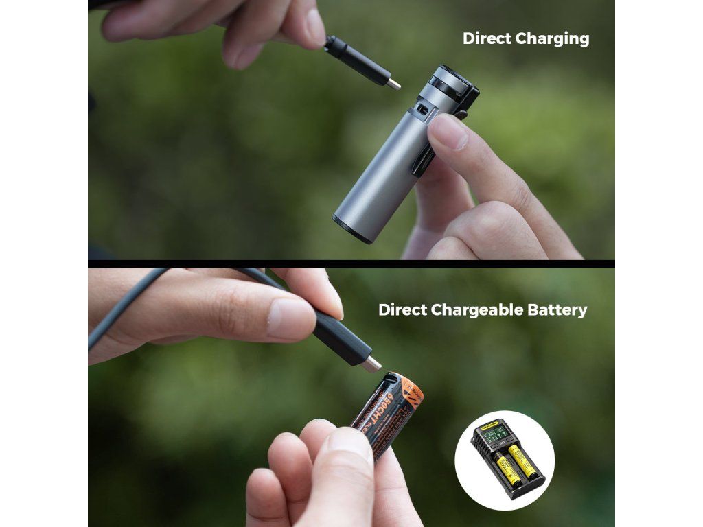 - Praktické nabíjení: Integrovaný USB-C port přímo v těle svítilny, nevyžaduje speciální nabíječku.
