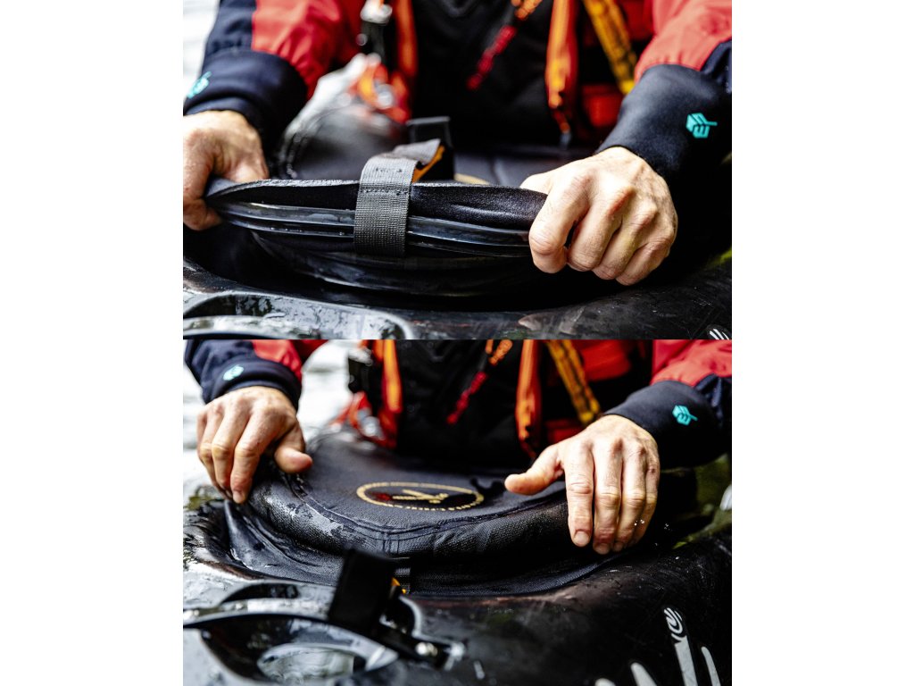 Špricdeka na divokou vodu pro experty. Aramidové výztuhy, strhávací popruh i ucho.