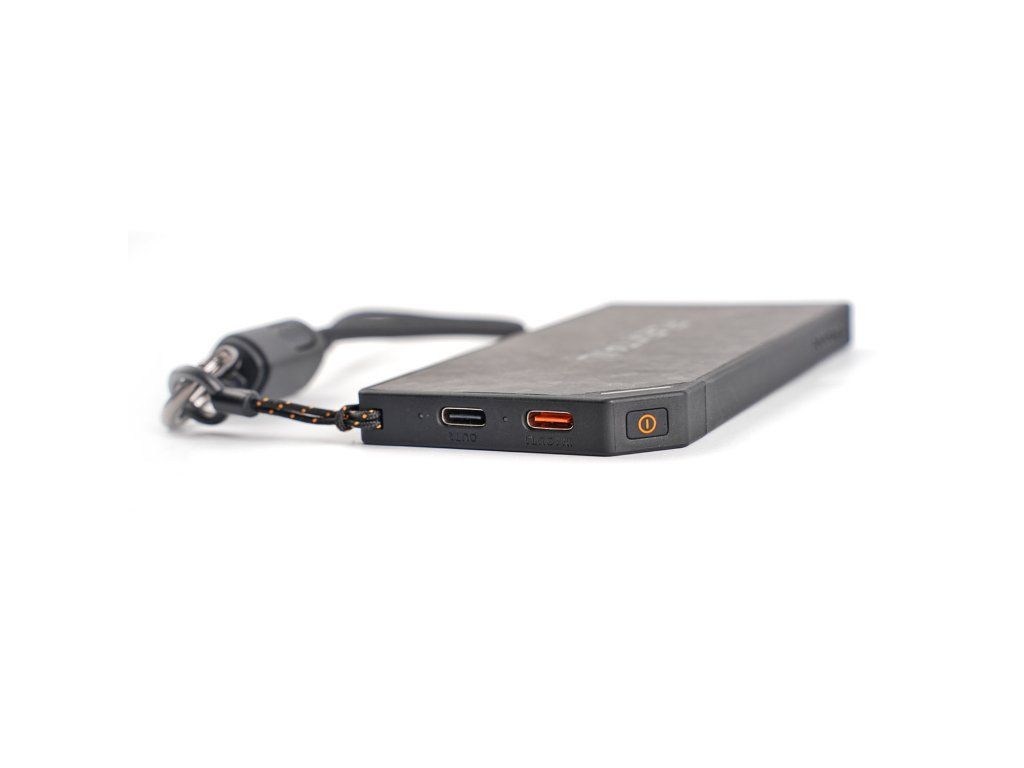 USB-C kabel, který je součástí balení, slouží zároveň jako praktické poutko. Provlečte ho očkem a připevněte powerbanku přímo na batoh nebo k vybavení v kempu – budete ji mít vždy po ruce a kabel nikdy neztratíte.