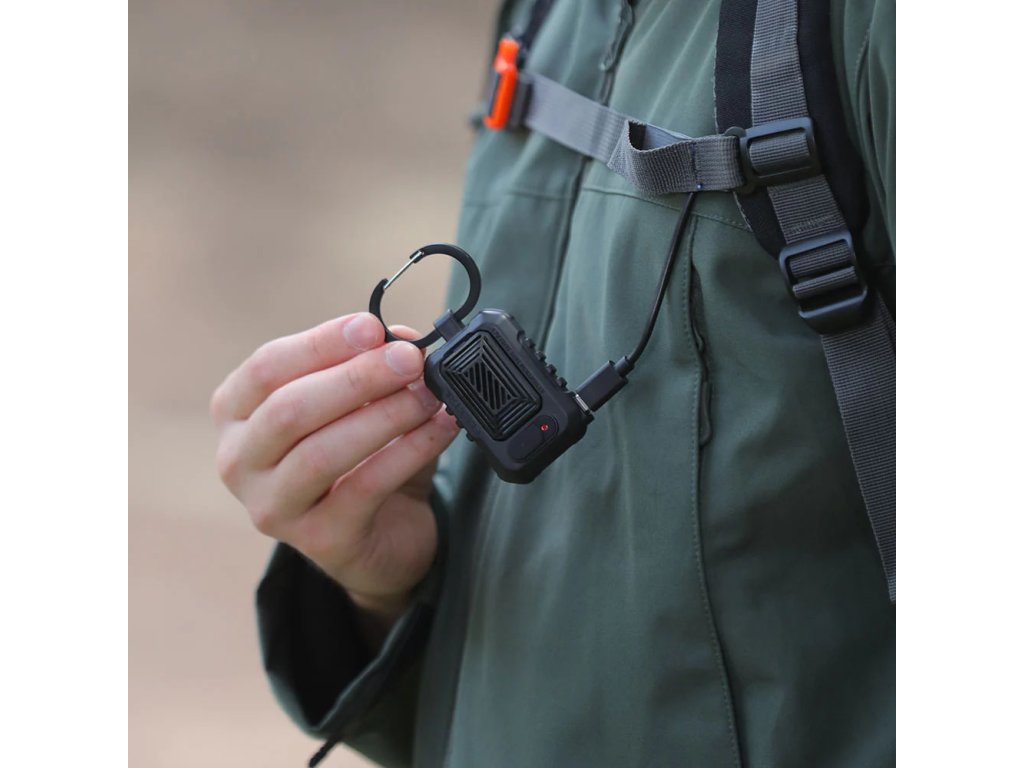 Ideální zařízení do outdooru je malé, lehké a snadno sbalitelné. Díky vestavěné karabině můžete LIGHT Repeller umístit kamkoli potřebujete – na přední popruh batohu, na stan, na bundu. Karabina funguje i jako stojan, díky ní může LIGHT Repeller stát třeba na stole.