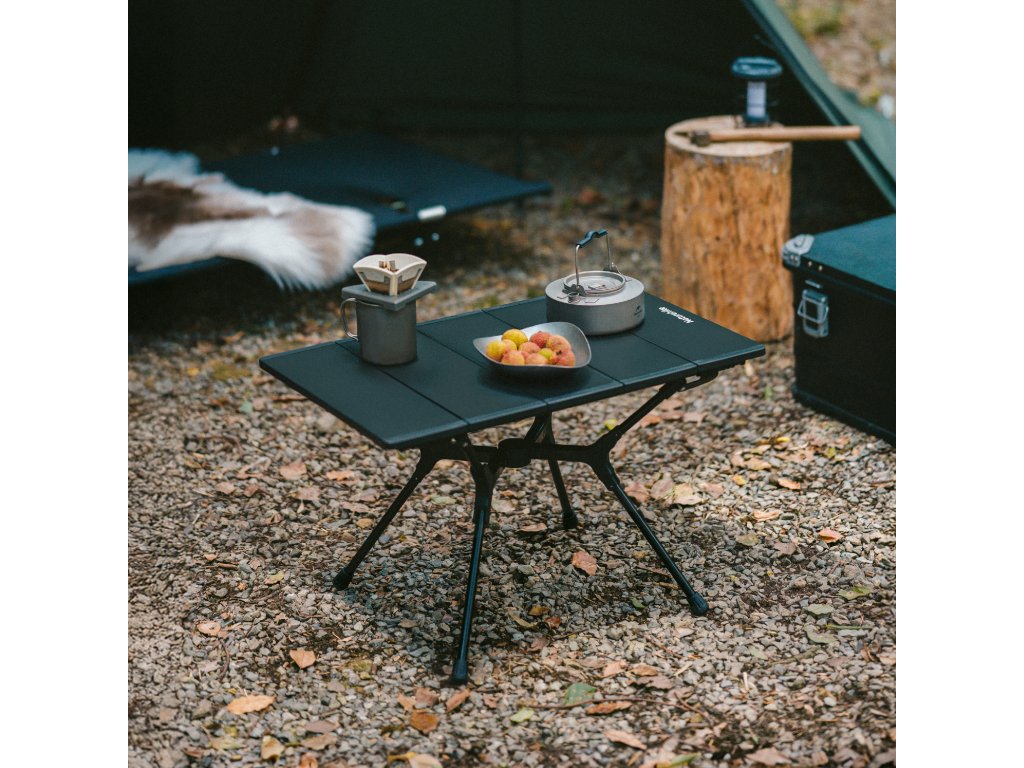 Lehký, skladný a odolný stolek pro kempování, turistiku, pikniky i pláž. Robustní hliníková konstrukce, rychlá montáž bez nářadí a voděodolná deska zajistí pohodlí a spolehlivost na každém výletě.