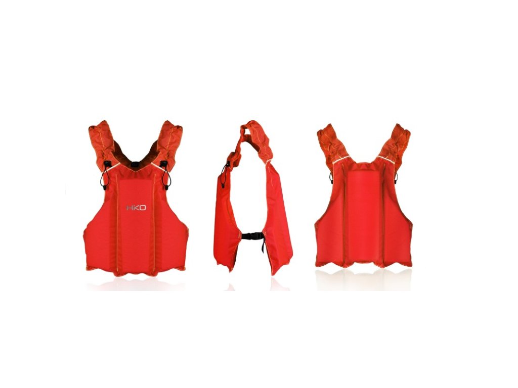 Jednoduchá dětská vesta se snadno upevní pomocí nastavitelných ramen.